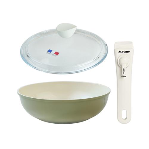 (백화점판매상품) [알루아트] 매직그립 매트그린 웍3P세트_인덕션겸용 (웍28+유리뚜껑28+멀티핸들) BA28(TE)GL