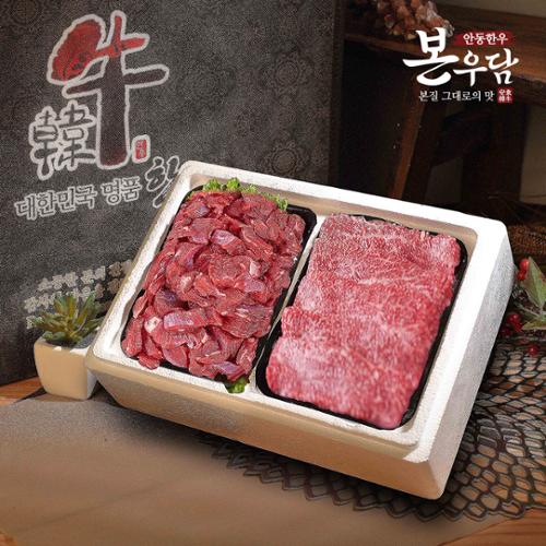[안동한우 본우담] 1+등급이상 한우 정육 실속세트 1호 800g (국거리400g + 불고기400g) M