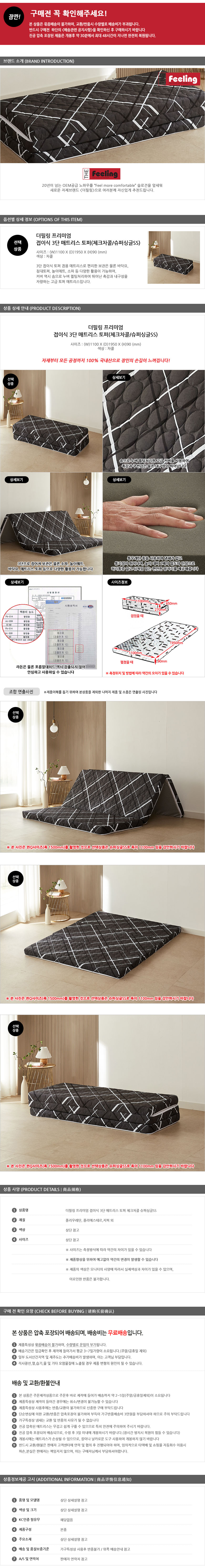 더필링 프리미엄 접이식 3단 매트리스 토퍼 체크 슈퍼싱글SS_색상 택1