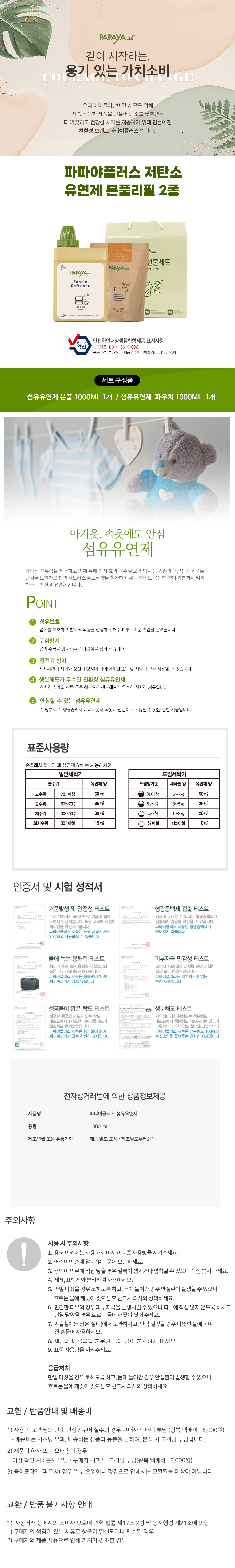 파파야플러스 유연제 본품리필 2종