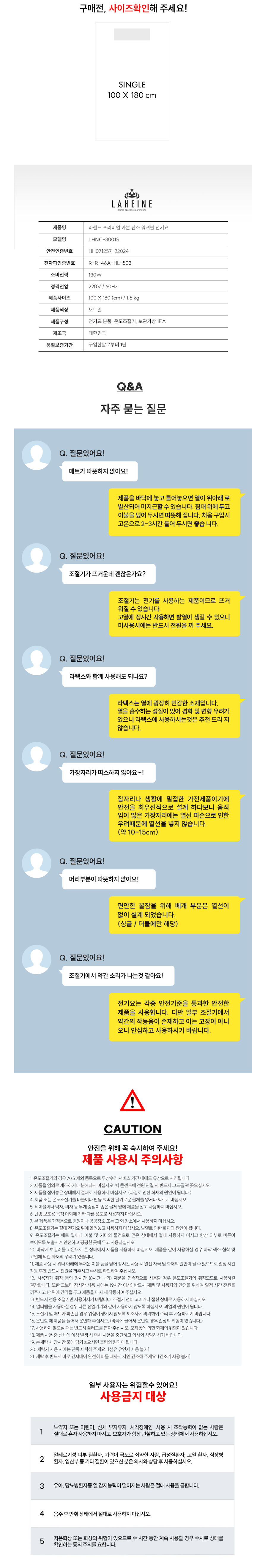 [라헨느] 오트밀 탄소열선 카본매트 워셔블 양면 전기요 싱글
