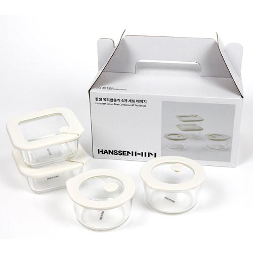 한샘 유리 실리콘 용기4P 세트 베이지 (320ml 사각2p + 236ml 원형 2p)