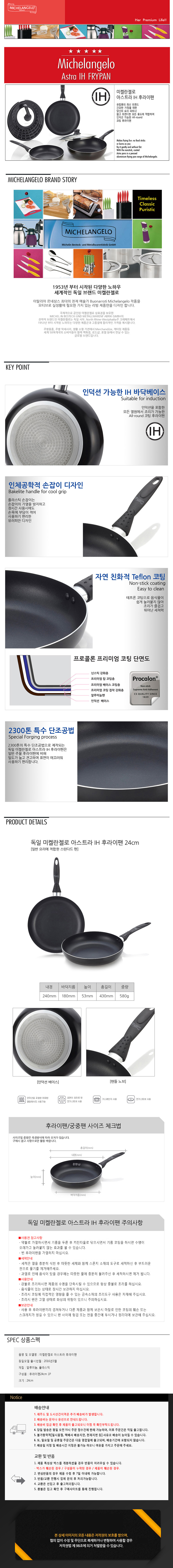 [독일 미켈란젤로] 아스트라 IH 후라이팬 24cm(인덕션가능) Astra-24