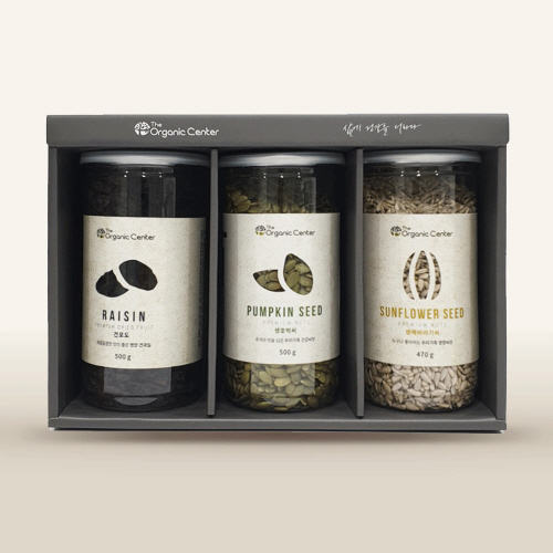 [더 오가닉센터] 선물용 견과 3종세트 (생호박씨.생해바라기.건포도 각 1통)