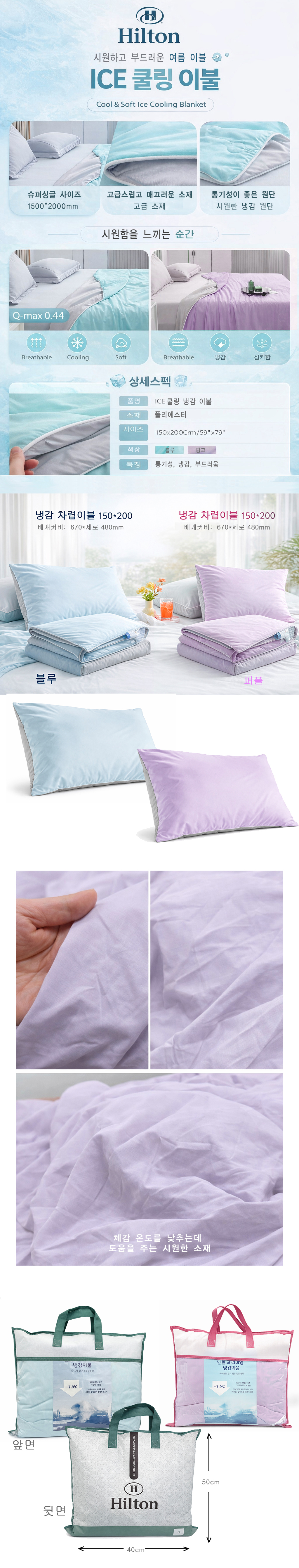 [힐튼] 여름용 냉감이블+베개 커버 세트(1500*2000mm)_색상 택1