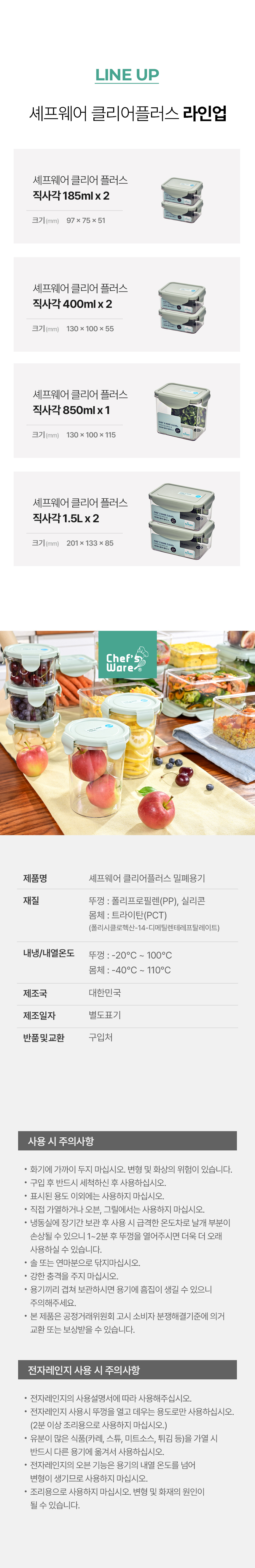 [셰프웨어] 클리어 플러스 트라이탄 밀폐용기 직사각 7조 세트(1세트입) DYC-PCT-NH-7P