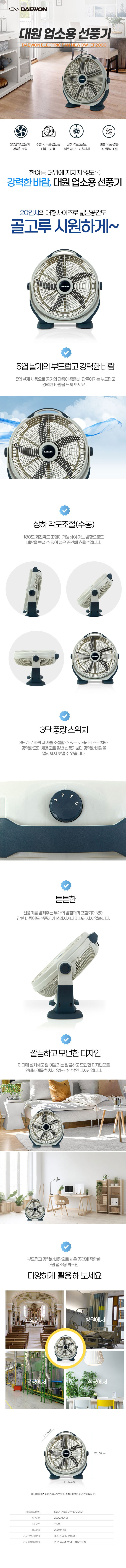 [대원] 업소용 박스형 선풍기 50.8cm NEW DW-EF2000 화이트 / 20인치 데스크팬