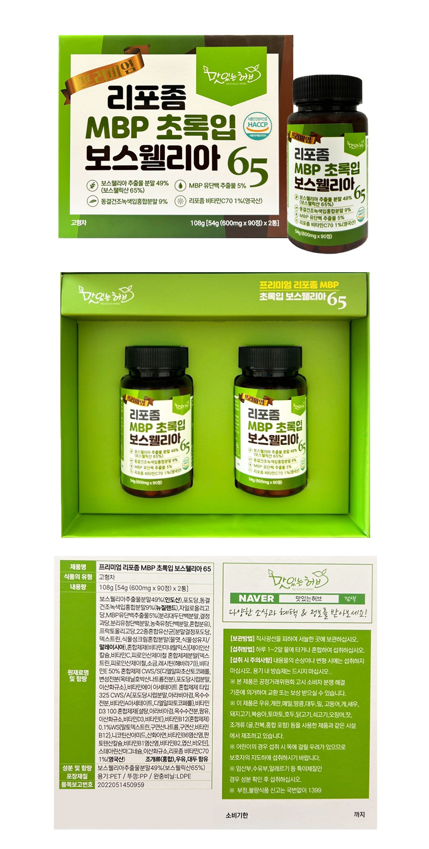[맛있는허브] 프리미엄 리포좀 MBP 초록입 보스웰리아 65 600mg*180정